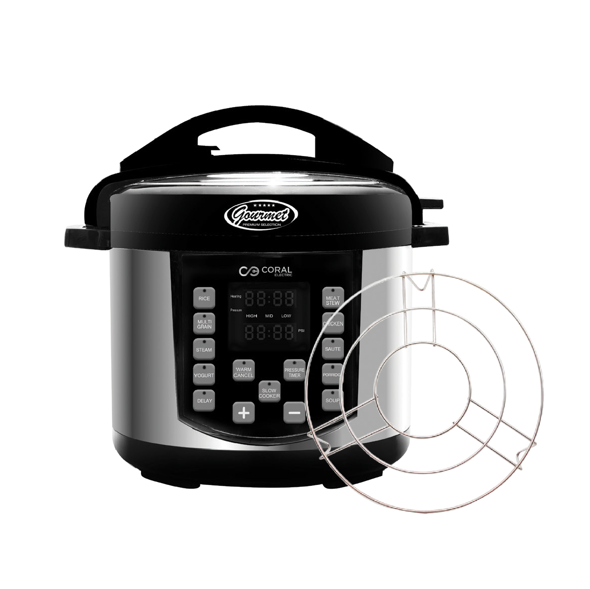 Coral digitalni električni ekspres lonac EL-1500 Gourmet INOX Plus jedan je od najuniverzalnijih i najpraktičnijih kuhinjskih aparata na tržištu. U sebi sadrži sve funkcije koje su Vam neophodne za zdravo i efikasno kuvanje ukusnih jela. Možete: